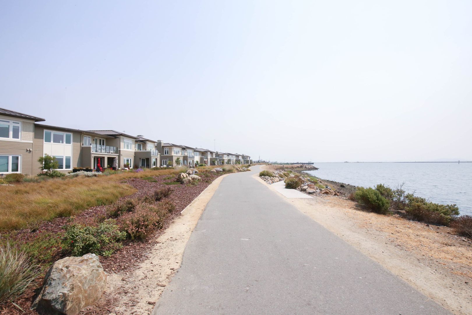 Welcome to this fabulous home in the Waterline Community nestled right along the shoreline in Point Richmond with views of the Bay. This newer home boasting an open floor plan space of 2,400 sqft. features 3 bedrooms and 3 bathrooms on two levels. The living area as well as all the bedrooms are all one one level. Modern touches and upgrades include a chef’s kitchen with white cabinetry and quartz counters, 6 burner stove, subway tile backsplash, and a large center island kitchen perfect for bar seating and entertaining alike. The master bath is complete with tile surround, a glass shower enclosure, and separate tub to soak in. There’s a mix of engineered hardwood in the main common areas and premium carpet in the bedrooms. Full size washer and dryer is located in the laundry room with plenty of cabinet storage space. The home is perfect to relax in while enjoying Bay views as well as other amenities including a a community BBQ area, picnic tables, benches, pet maintenance station, raised planting beds & paths for strolling.